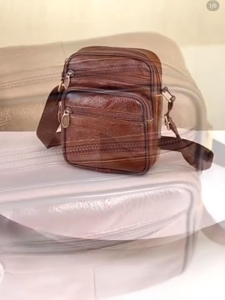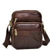 Retro pánská crossbody taška z pravé kůže, Malá taška přes rameno s více zipy na telefon, peněženku, pro každodenní cestování