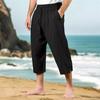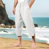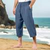 Pánské bavlněné a lněné kalhoty, letní kalhoty, plážové kalhoty, elastický pas se stahovací šňůrkou