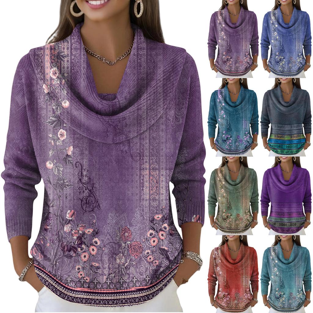 Dámský ležérní a módní svetr s dlouhým rukávem a potiskem, kulatým výstřihem