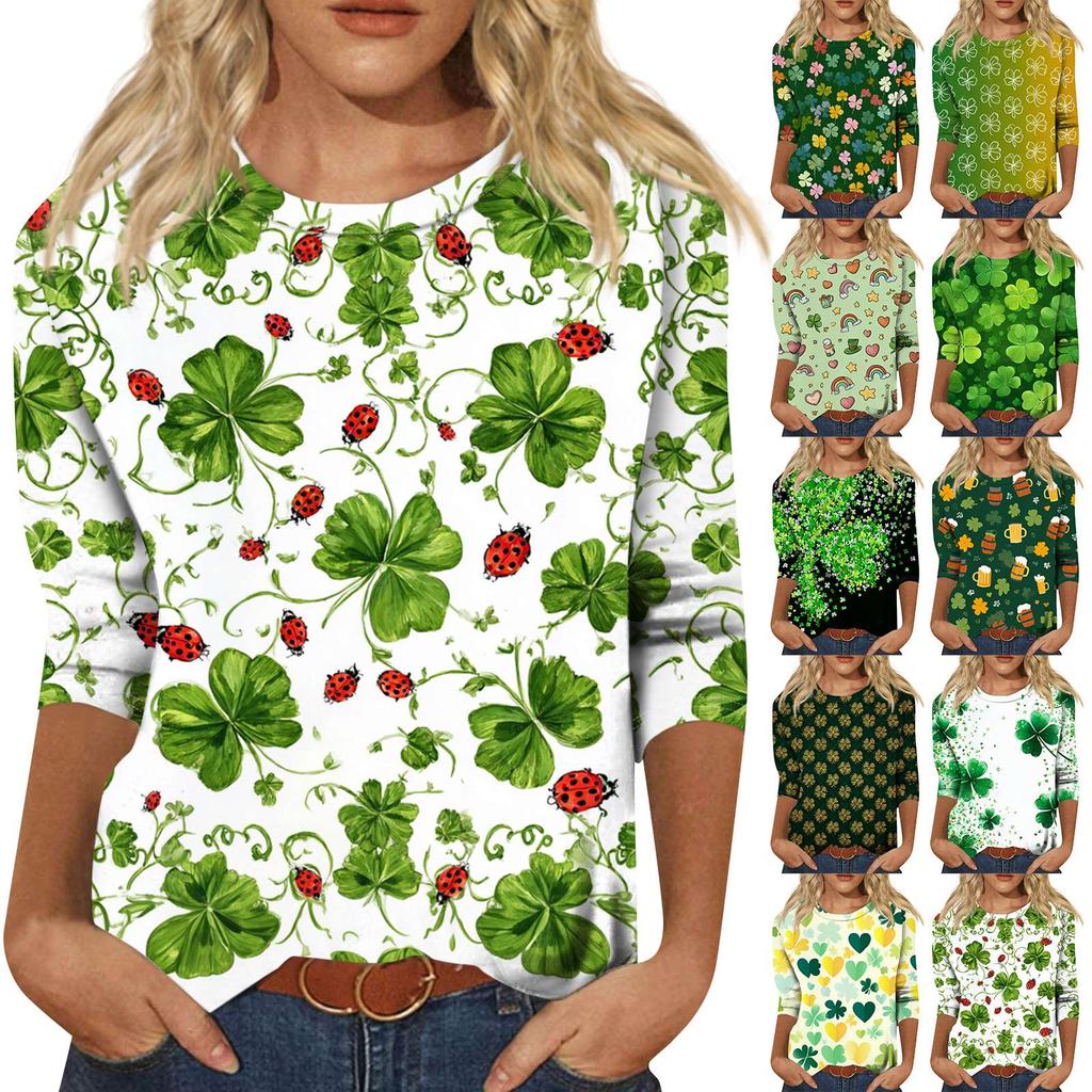 Dámský módní ležérní svetr s kulatým výstřihem a tříčtvrtečním rukávem s potiskem Saint Pao