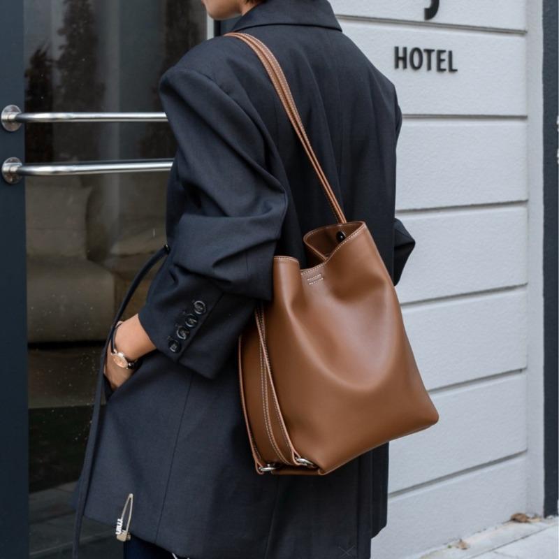Genuine Leather Single-shoulder, Double-shoulder Crossbody Bag, High-end, Simple Cowhide Bag, Bucket Bag
