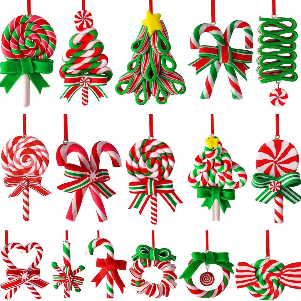 16Pcs Colorful Wooden Candy Christmas Tree Pendants Cane Lollipop Bobboard Candy Christmas Party Home Decoration for Gift