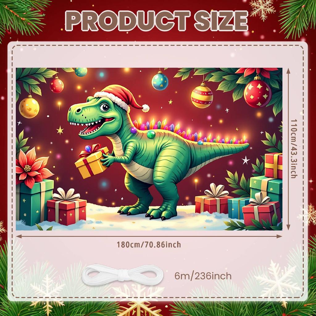 Festive Dino Display Holiday Decor Xmas Gift Backdrop Winter Dino Background Green Dinosaur Gifted Dino Display For Photo Shoot