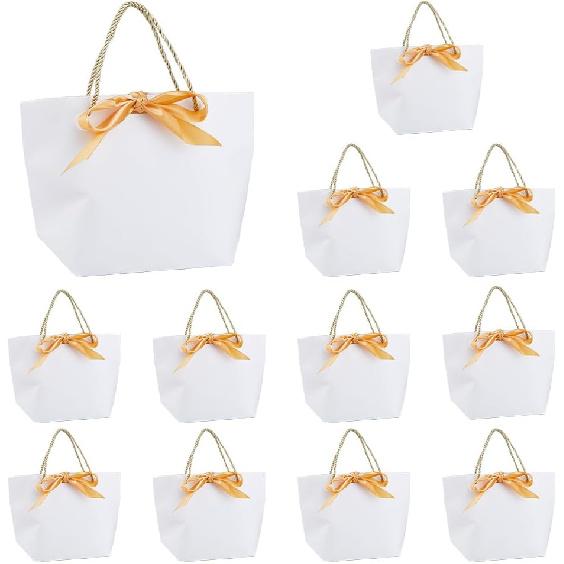 SUPERFINDINGS 12 Sets White Gift Bags Medium Gift Bags with Handles Party Favor Bags with Gold Bow Ribbon Paper Bags Bulk For Party Wedding Birthday