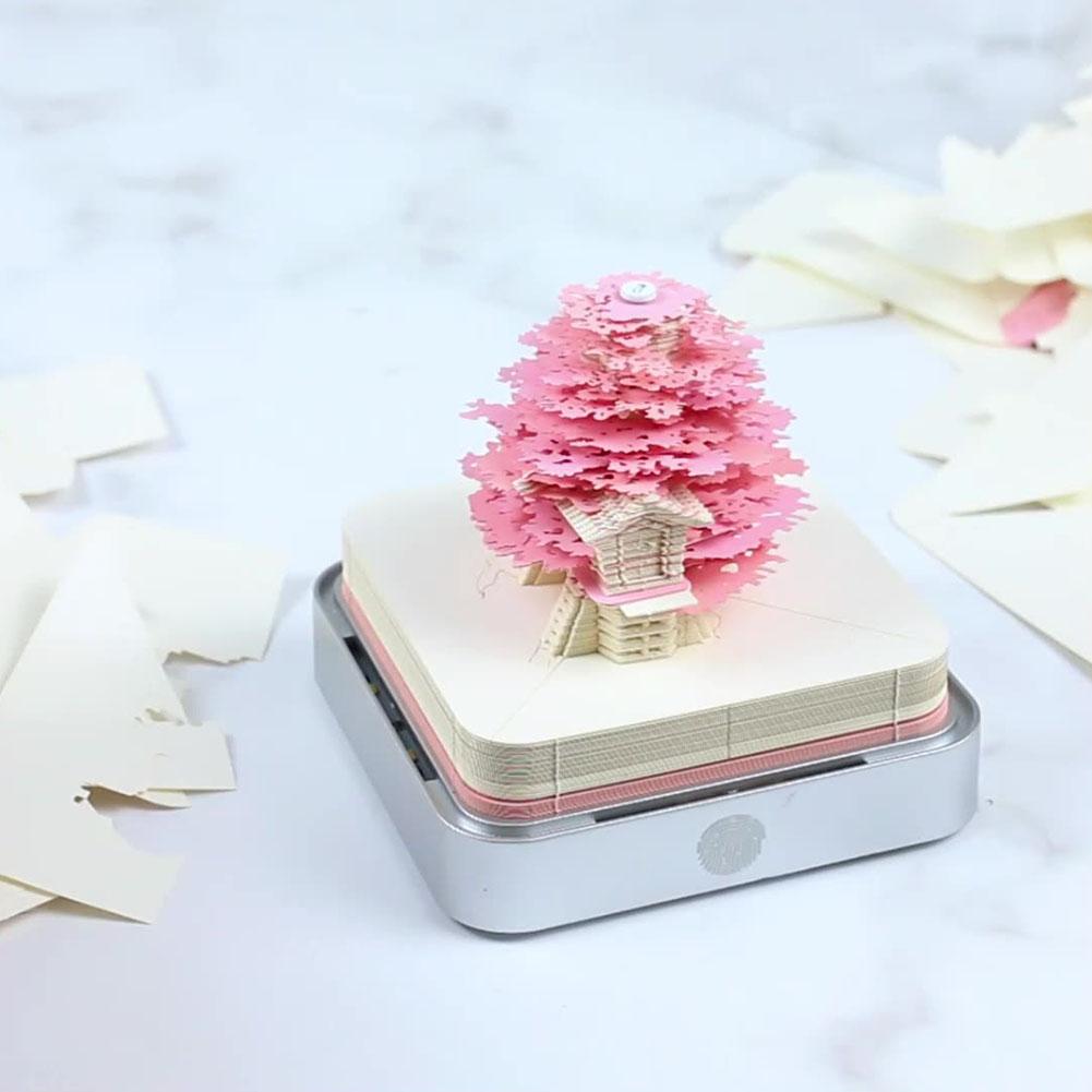 2026 Paper Sculpture Calendar LED Lights Desk Calendar Paper Carving Art Memo Pad for Christmas Housewarming Desktop Decoration