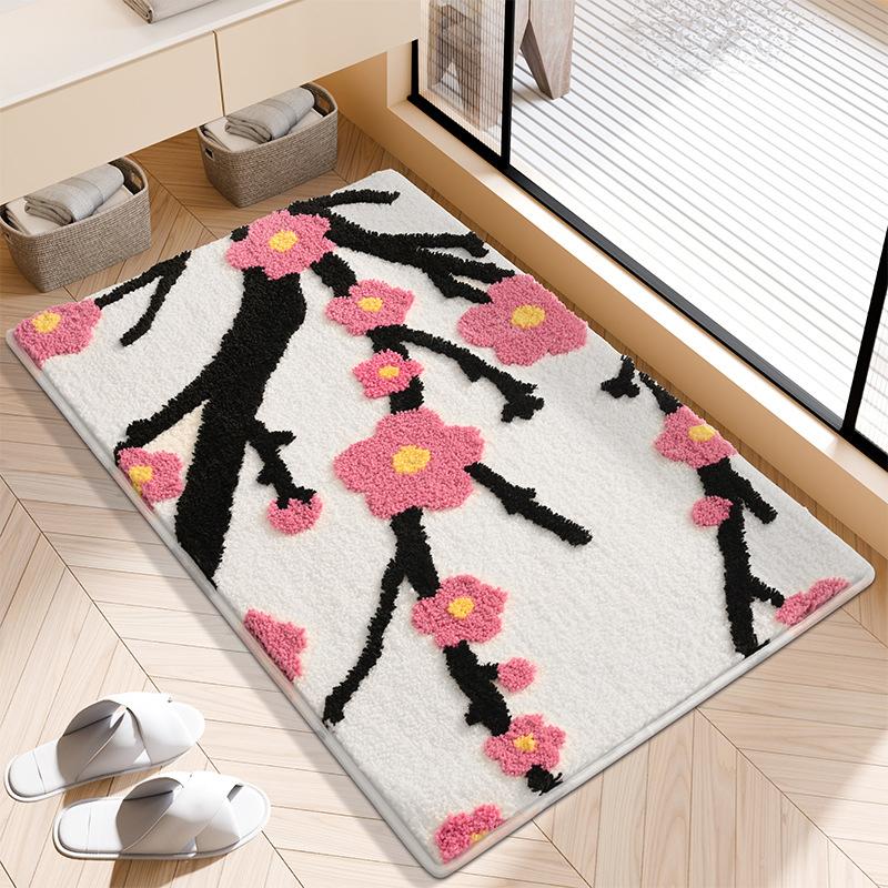 Flocking Thicken Entrance Carpet Tufted Chinese Plum Pattern Bedside Rug Non-slip Absorbent Bathroom Floor Mat Bedside Rug