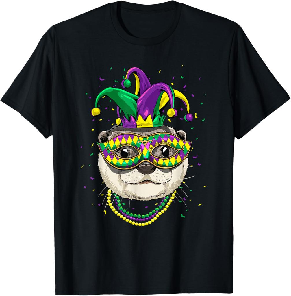 Mardi Gras Otter Mask Beads Graphic Print Cotton Casual T-Shirt for Men