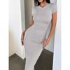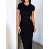 Women's Spring Summer Imported Solid Bodycon Chic Slim Fit Short Sleeve Fashion Dress