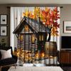 2pcs HD autumn wooden house under maple tree decorative curtain Yellow tie digital printed curtain Home decoration style deco