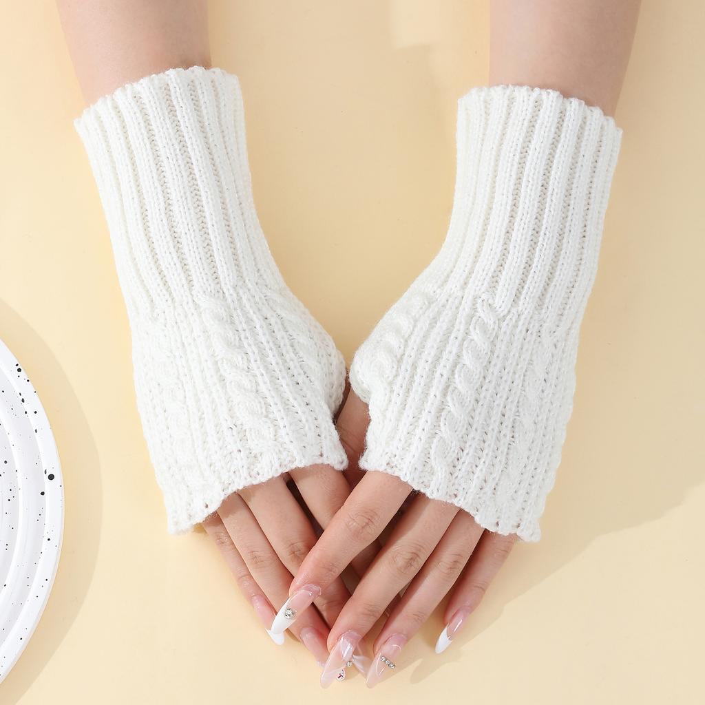 Nové krátkoprsté rukavice s odhalenými prsty pro ženy Podzim a Zima Pletené vlněné návleky Teplé a odolné proti chladu Módní návleky na paže s odhalenými prsty