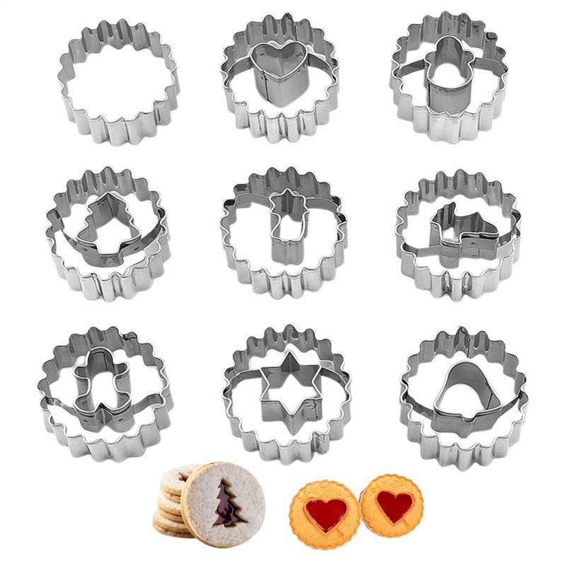 Small Christmas Cookie Cutters 9X Stainless Steel Round Cookie Cutter Holiday Favor Decorative Heart Star Gingerbread Man Baking