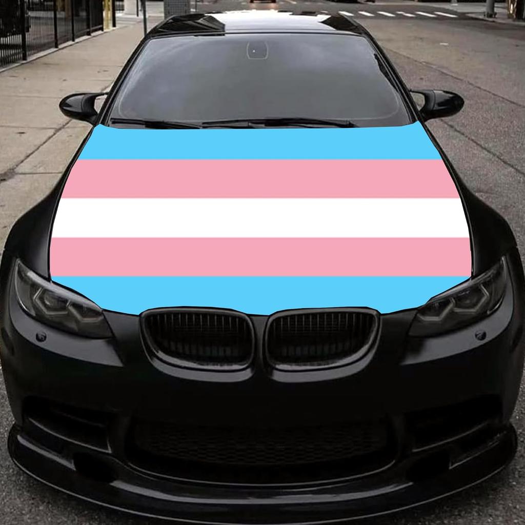 Transgender Pride Flag Car Hood Cover 4X5 Ft Polyester Car Bonnet Banner,Elastic Fabrics Can be Washed Suitable for SUV and Pickup Trucks
