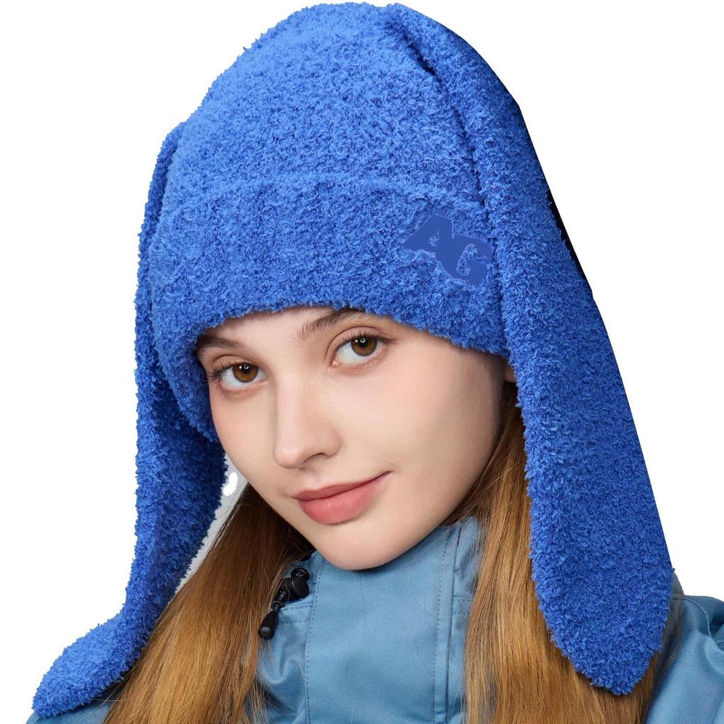 Ash Greem Rabbit Ear Knit 5 Colors Perfect for and Bunny Ear Knit Cap with Fluffy Women's Cap, AGAP-3605, 30BLUE, Available, Skiing, Snowboarding,