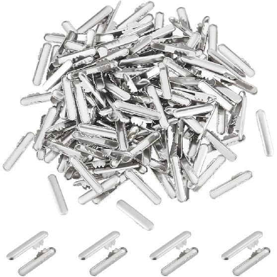 UNICRAFTALE 300pcs Stainless Steel Cord Ends - Metal Crimp Ends for Elastic String, Binding Webbing, Hanging - 15.5x3x3mm