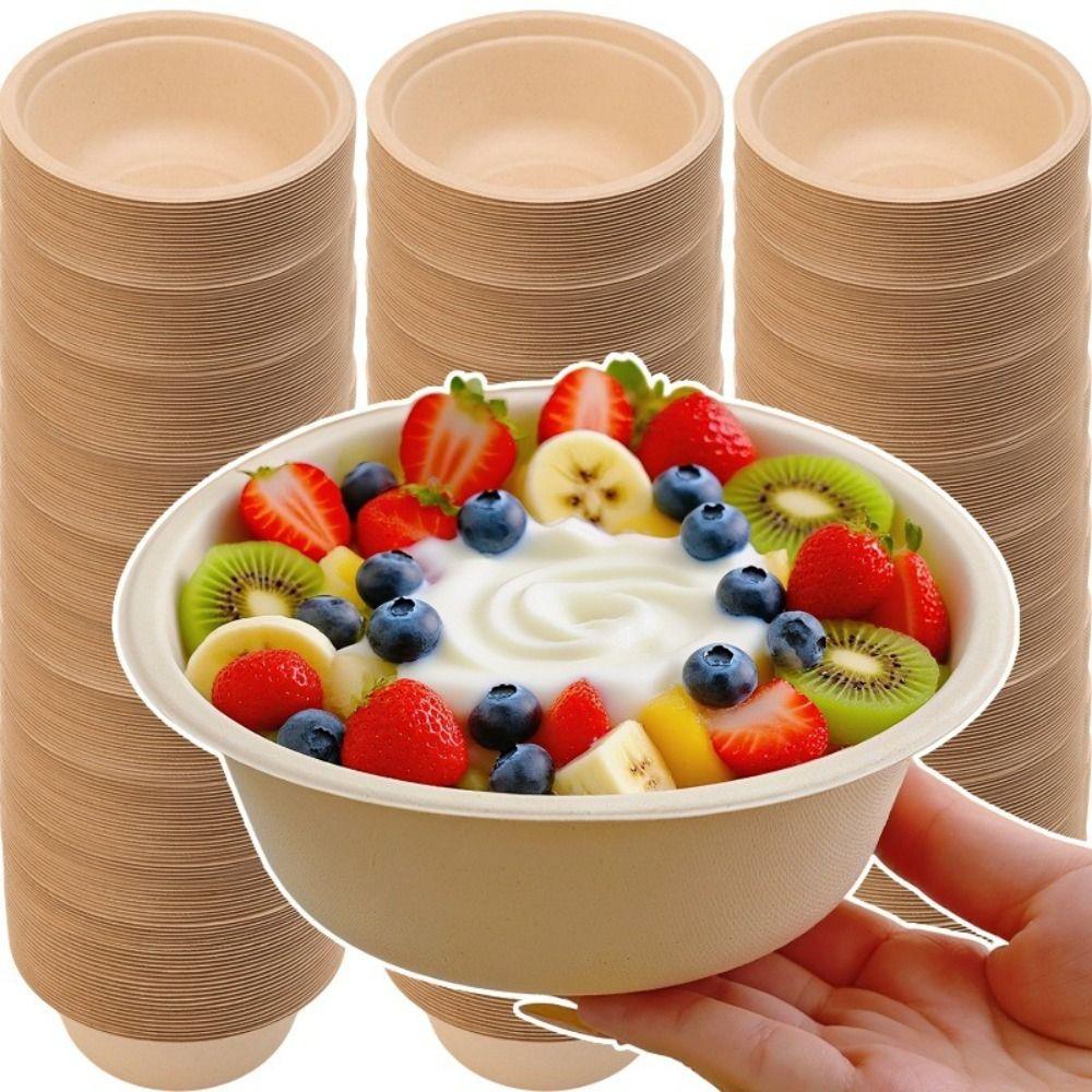 50PCS Thickened Eco-friendly Paper Bowl Leak-Proof Design Kitchen Accessories Round Lunch Bowl Soup Bowl for Takeout/Picnic