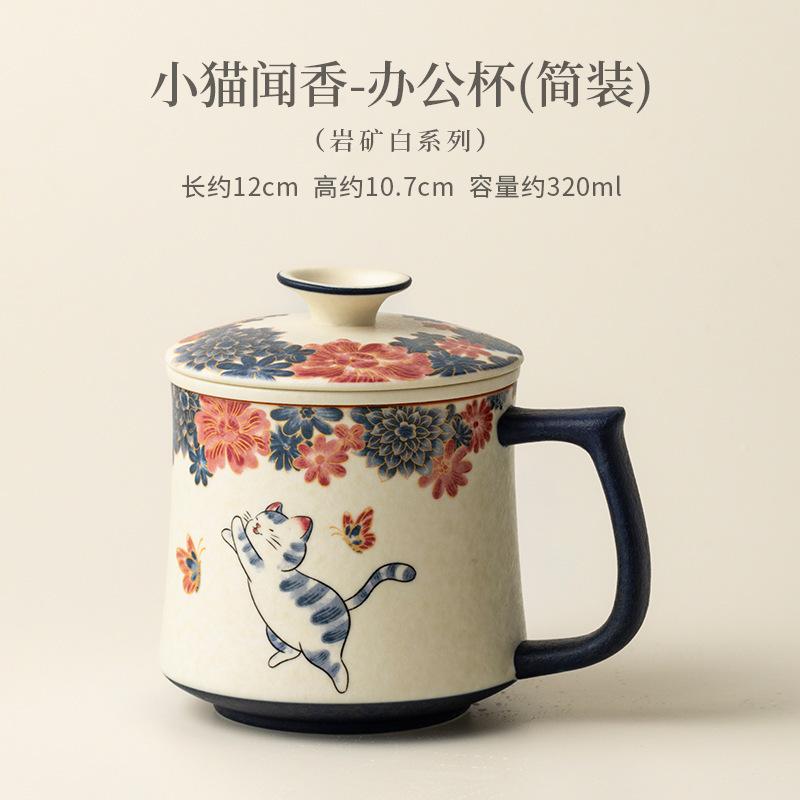 320ml Hand Painted Little Cat Rock Mineral Filter Tea Separator Cup Ancient Tea Mug With Infuser Tea Brewing Office Water Cup