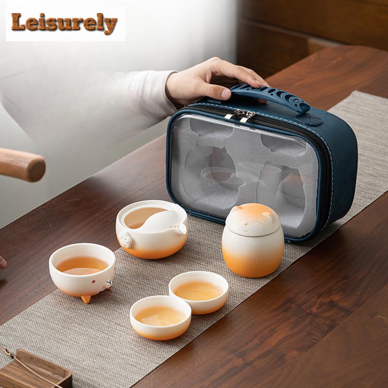 Shiba Inu Barevný přechod Cestovní čajová souprava Sada Ručně vyrobená 1 konvička 3 šálky Čajovar Organizér Přenosná kempingová taška Dekorace Řemeslo