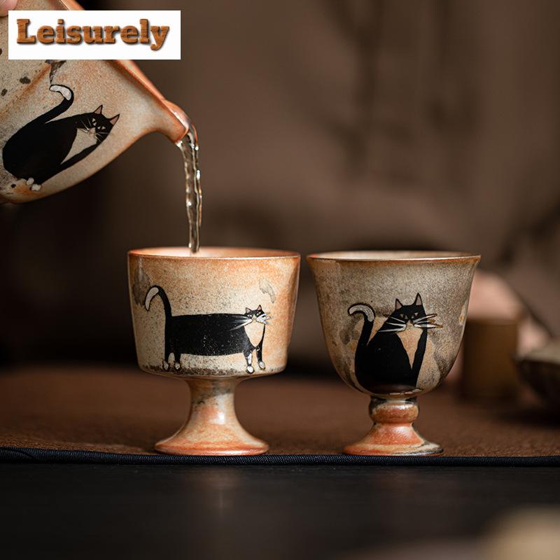 Japanese Kiln Change Zhiye Cat Ceramic Tea Cup Retro Wood-fired Porcelain Large Master Cup High Foot Tasting Mug Kung Fu Tea Set