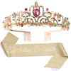 Good-Birthday Girl Tiara Crown Princess Crown With Birthday Sash For Women Happy Birthday Party Supplies
