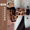 Fashion Knitted Gloves Season Warm Gloves Women's Cute Leopard Print Bare Finger Wrist Gloves