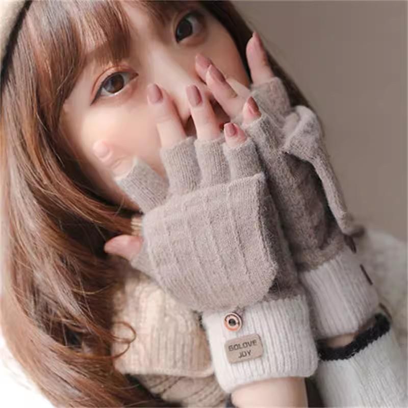 Half finger flip lady cute fleece cold-proof wool dew finger half writing