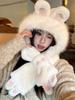 New New Year's rabbit plush hat scarf integrated female cute winter cycling warm scarf female cute