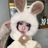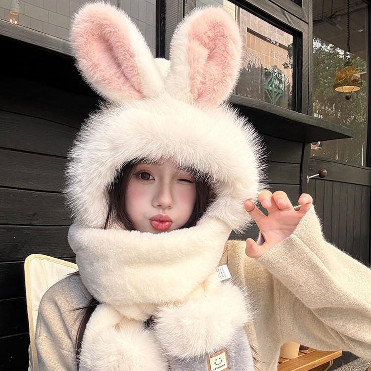 Rabbit Ears Hat Season Girl Scarf Gloves Integrated Hooded Scarf Cute Thickened Warm Plush Three-piece Set