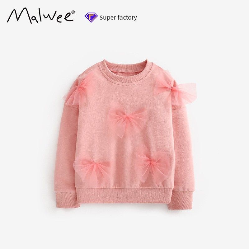 Cross-Border Malwee Girls' Sweatshirt Autumn and Winter New European and American Style Children's Round Neck T-Shirt Long-Sleeve Base Shirt Pullover