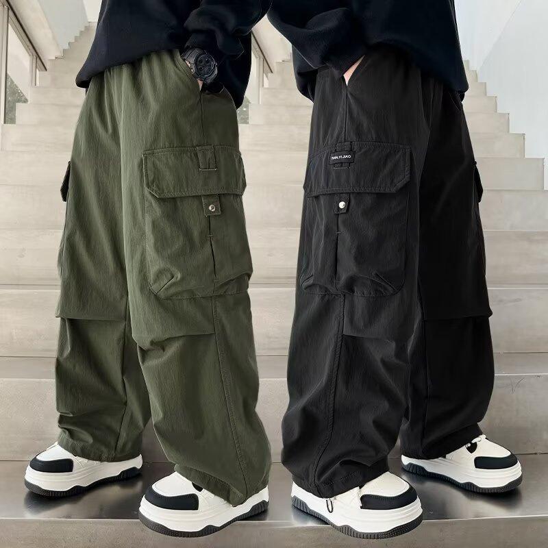 Spring Autumn Boys Cargo Pants Children Spring Casual Trousers Children Straight Loose Pants Teenager Solid Color Wide-leg Clothing