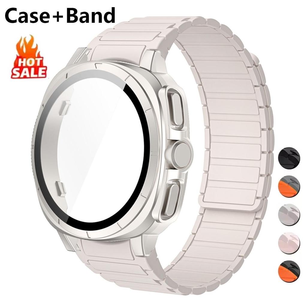 PC Case+Strap Upgrade To Ultra 47mm for Samsung Galaxy Watch 7 40mm 44mm No Gaps Silicone Magnetic Band PC Tempered Glass Screen