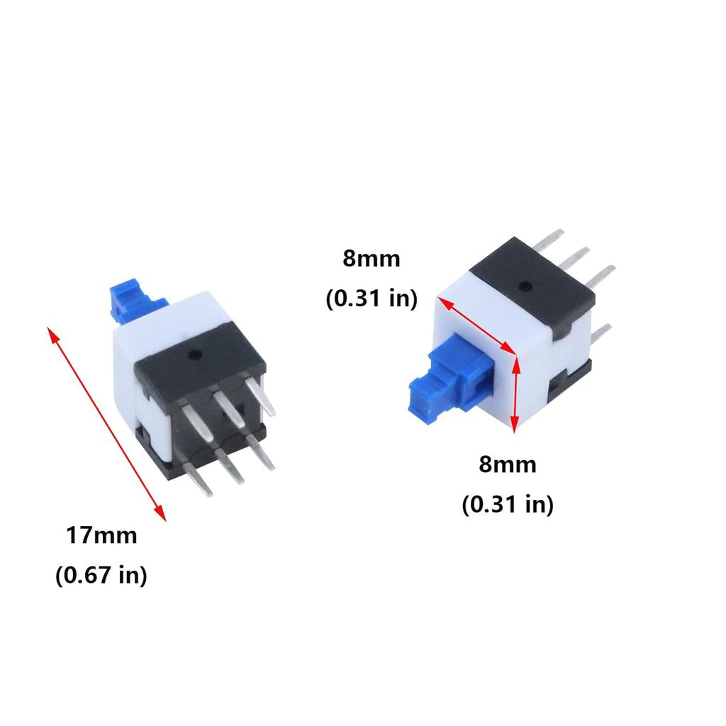 Antrader 30 Pcs Micro Push Button Switch, 6 Pin DPDT Self-Locking Power On/Off Latching Switches 8 x 8mm