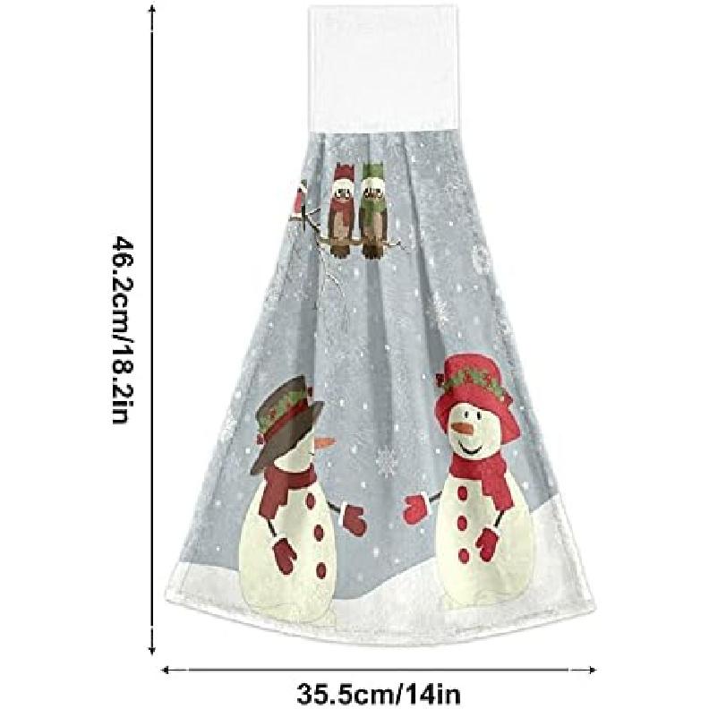 Winter Snowman Owl Kitchen Towels Christmas Snowflake Bathroom Hand Towel Hanging Tie Towel with Loop 2PCS, Soft Absorbent Dish Cloth Fingertip Towel