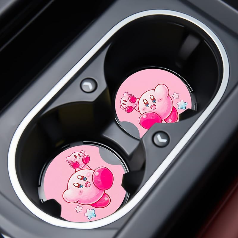 Car Cupholder Coaster Absorbent 2 Pack Cute Kawaii Cartoon Design Rubber New Automotive Cup Holder Decal Decor Accessories for Women Men BD353