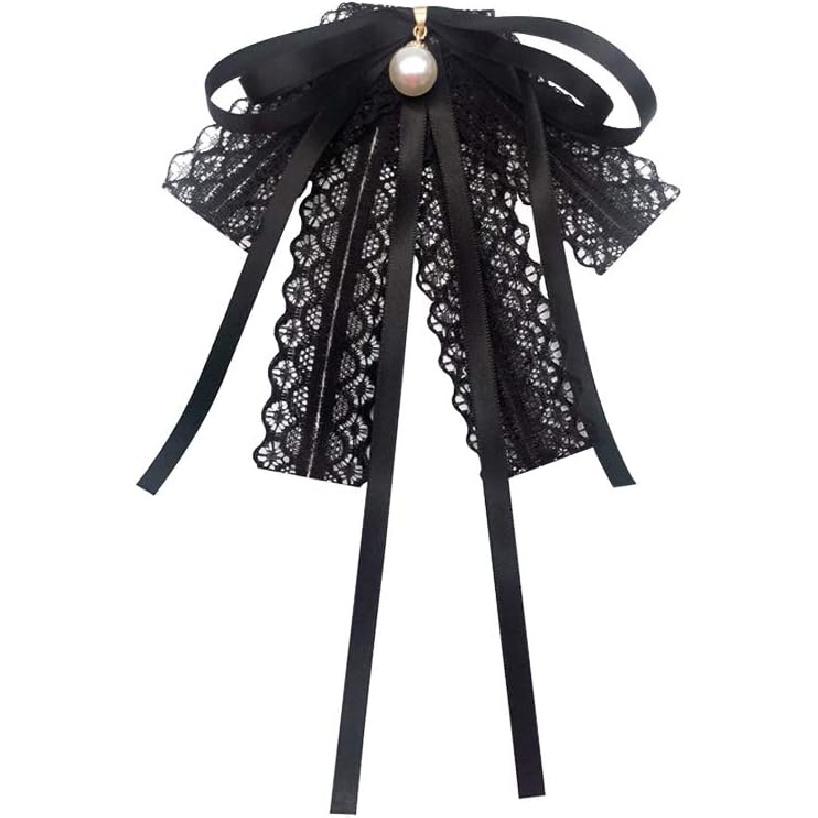 Black lace Bow Tie Brooches for Girl Women Fashion jabot collar brooch pins Pre-Tied Neck Tie Shirt Corsage Neck Tie
