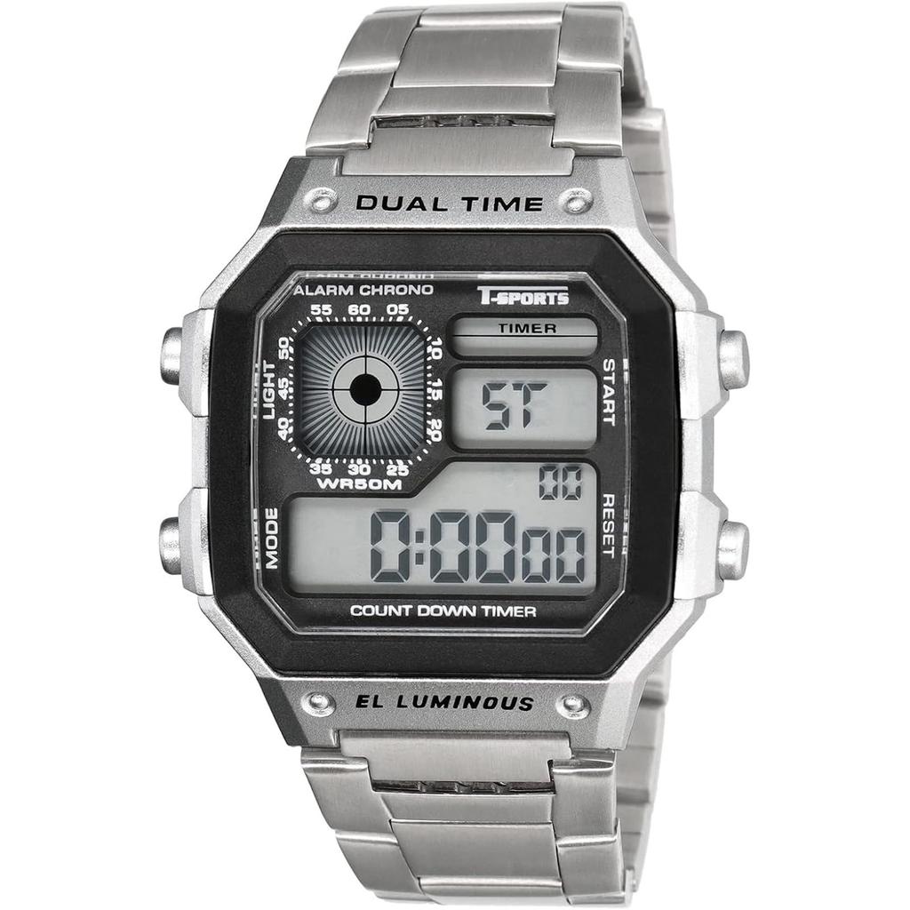 CREPHA Men's Digital Waterproof Watch with Metal Band, Silver, TS-D306-SV