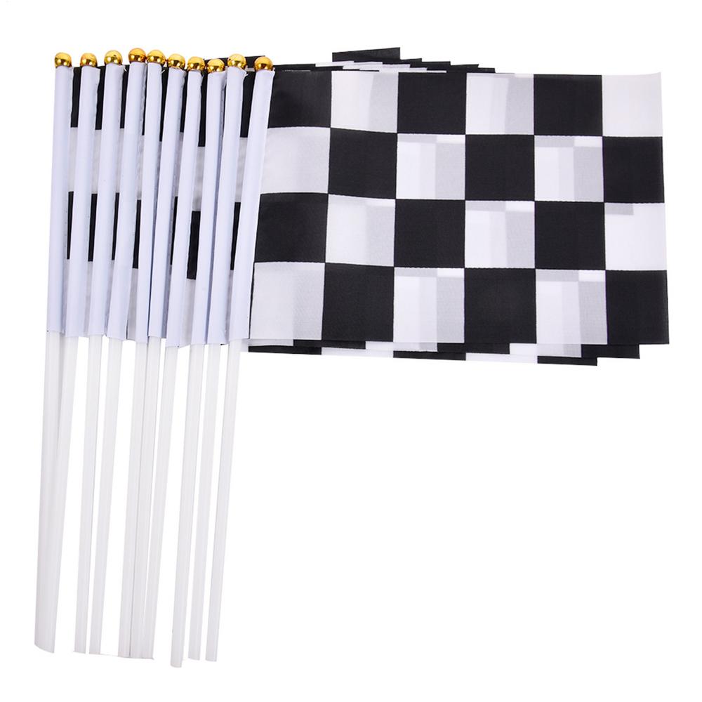 10Pcs Checkered Racing Polyester Flags with Stick Black and White Hand Flag