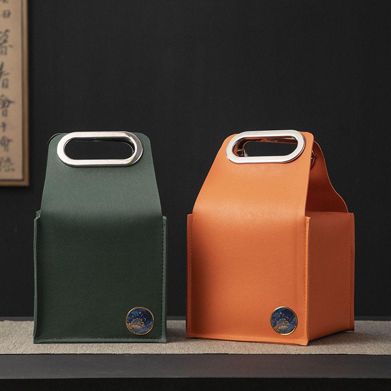 Solid Color Leather Tea Packa Empty Gift Box Longjing Black Teas Single Can Double Can Box Annual Meeting Gifts Earthquake-proof