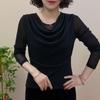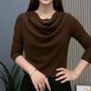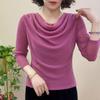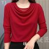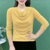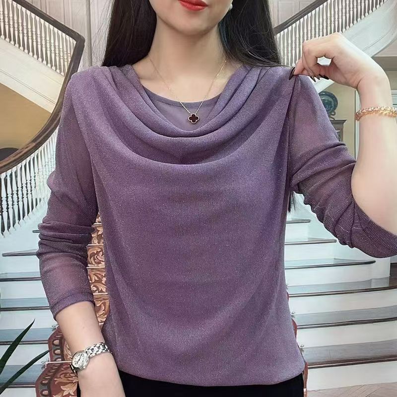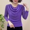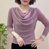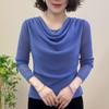 Jaro Podzim Síťovina Úzké Základní Tričko Dlouhý Rukáv Skládané Jednobarevné Tenké Vrchní Díly Trička Vintage Kancelářské Dámské Oblečení