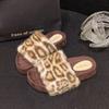 Pohádkové pantofle s leopardím potiskem, dámské venkovní nošení 2025 podzimní nové plyšové do klimatizované místnosti, líný jednoslovný bavlněný mop