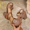 Dámské široké sandály na masivním podpatku, nazouváky s jedním páskem na přezku zdobené cvočky, letní velkoobchodní sandály skladem