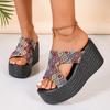 Women’s Canvas Wedge One-Strap Sandals, Thick Sole Summer Beach Slides
