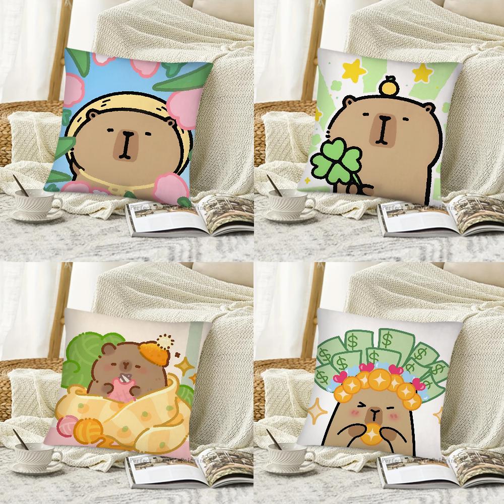 Cartoon Capybara Pillow Case Square Pillow Cushion Cover Bedroom Sofa Room Decoration Casual Pillow Cover
