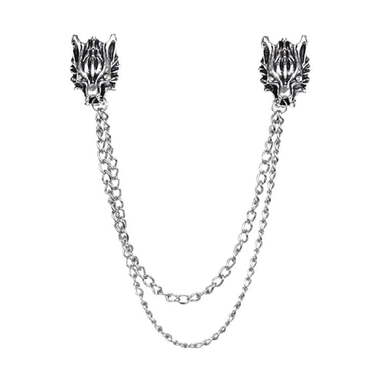 Wolf Head Lapel Pin with Chain for Jackets Hat Bag, Punk Wolf Head Lapel Pin Brooches Halloween Jewelry for Men Women