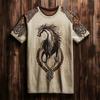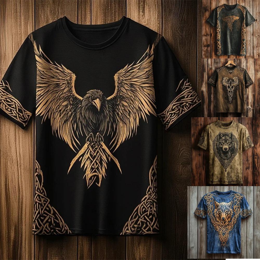 Pánské Vintage Severský Havraní Totemový Potisk Ležérní Tričko s Krátkým Rukávem Nadměrná Velikost Kulatý Výstřih Tričko s Krátkým Rukávem Letní Dámské Tričko Top