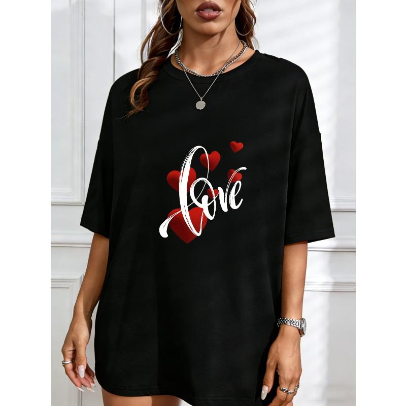 White Crew Neck T Shirt With Red Hearts And Love Text For Valentine's Day And Romantic Occasions