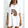 Oversized T Shirt Black Horse 2026 Chinese New Year Floral Design Casual Wear For Women