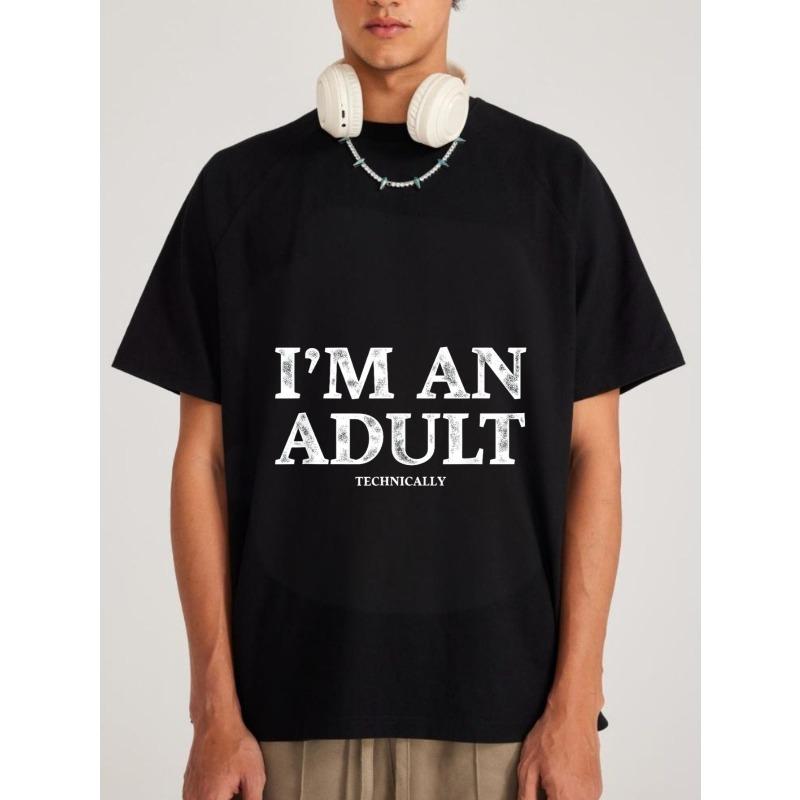 White T-Shirt I M An Adult Text Print Casual Wear for Men