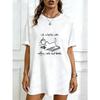 White T-Shirt With Cats And Books Print For Casual Wear