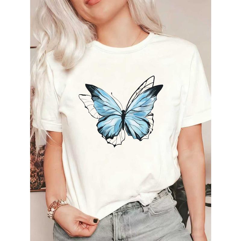 Oversized T-Shirt Black Blue Butterfly Print Casual Wear