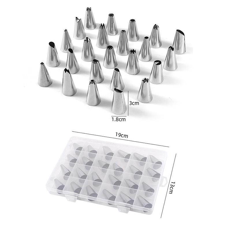 24 stylů Nerezová ocel Dekorativní cukrářská špička Dortová dekorační sada Krabička Dekorace Převodník na nehty Pečicí špičky